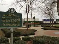 Meridian Downtown Historic District runs from the former Gulf, Mobile and Ohio Railroad tracks north to 6th St between 18th and 26th Avenues, excluding Ragsdale Survey Block 71 on the northeastern tip of the district. The district was created in 2005 to combine two older districts, Meridian Urban Center Historic District and Union Station Historic District.[3] Meridian's city council voted to combine these two districts and the nine blocks between them into one large district, which was added to the National Register of Historic Places on January 16, 2007.[2]