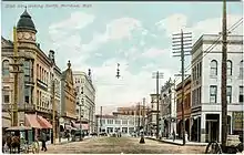 In 1885, Meridian was the junction of five railroads, with three others considering coming into the city. From then to 1905, this area was primarily residential, with a small industrial complex developing around the railroads.[3] The construction of Union Station in 1905–1906 led to the development of this area in business and industry. Much of Union Station was demolished in 1966, but a small portion continued to serve as a passenger station.[8]