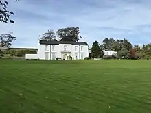 The estate of Bydown, within the parish of Swimbridge, was in ancient times owned by the Mayne and Chichester families.[21] The surviving Bydown House is a grade II* listed[22] country house built by the Nott family in 1798 as the surviving datestone states,[23] or between 1820–30 as Pevsner suggests.[24] It was described by Pevsner as "a trim neo-Grecian mansion in a small park with two immaculate white stucco fronts".[25] Between the lower storey windows is a small inscribed tablet inscribed "1759, J Nott", with the arms of Nott, reset on the new house.[26] It remained in the ownership of the Nott family until about 1925.[27]