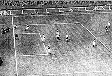 Chapman's first signing was veteran Charlie Buchan from Sunderland; as well as his contributions on the pitch, Buchan would play an important part off it. After Arsenal were beaten 7–0 by Newcastle United in October 1925, Buchan suggested a change to the formation to adapt to a relaxation of the offside law, adjusting Arsenal's formation to the "WM", strengthening the defence by pushing the centre half back into defence and the full-backs out to the wings.[30] Over time, Chapman developed the formation further, putting an emphasis on a pacey forward line, wingers cutting inside, and the role of a creative ball-playing midfielder.[31]