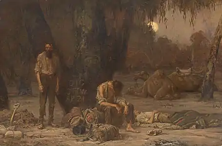 In 1862, John McDouall Stuart succeeded in traversing Central Australia from south to north. His expedition mapped out the route which was later followed by the Australian Overland Telegraph Line.[8]