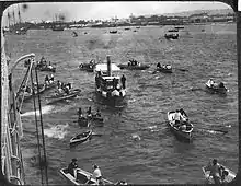By 1660, Barbados generated more trade than all the other English colonies combined. This remained so until it was eventually surpassed by geographically larger islands like Jamaica in 1713. But even so, the estimated value of the colony of Barbados in 1730–1731 was as much as £5,500,000.[11] Bridgetown, the capital, was one of the three largest cities in English America (the other two being Boston, Massachusetts and Port Royal, Jamaica.) By 1700, the English West Indies produced 25,000 tons of sugar, compared to 20,000 for Brazil, 10,000 for the French islands and 4,000 for the Dutch islands.[12] This quickly replaced tobacco, which had been the island's main export.