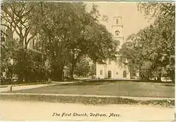The First Church and Parish in Dedham split in 1818 over a dispute about who should become the next minister. With the Congregational Church established in Massachusetts at the time, the dispute eventually reached the Massachusetts Supreme Judicial Court. As a result of the dispute, a majority of members broke away and formed the Allin Congregational Church.