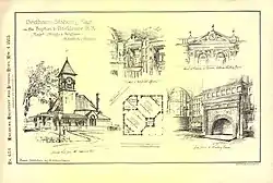 The 1798 Episcopal church in Franklin Square was replaced by a new building at the corner of Court Street and Village Ave.[79] It was 90' long and had a bell tower in front that was 100' high.[79] The builders, Thomas and Nathan Phillips, were from Dedham.[79] Designed by Arthur Gilman after Magdalen College, Oxford, it was consecrated in 1845 but burned down in 1856.[79]