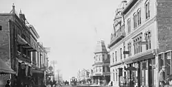 Prior to the 1890s, the mail was delivered to the Indiana Colony via Los Angeles. In an attempt to obtain their own post office, the Colony needed to change its name to something the Postmaster General considered appropriate. To this end the town fathers put three names up to a vote. The first was "Indianola," the second was "Granada," in keeping with the area's Spanish heritage. The third name was proposed by Dr. Thomas Elliott, who had contacted a missionary friend in Michigan who had worked with the Minnesota Chippewa Native Americans, although the Chippewa language had no ties to Southern California. He submitted four names for translation: "Crown of the Valley," "Key of the Valley," "Valley of the Valley," and "Hill of the Valley." All of the translations ended in "pa-sa-de-na," meaning "of the valley."[3] Due to its euphonious nature, Pasadena was chosen, put to a vote, and accepted, though maps from the Wheeler Survey of 1878 show the names "Indiana Colony" and "Pasadena" in the same location. In March 1886, Pasadena became the second incorporated municipality, after the city of Los Angeles, in Los Angeles County.