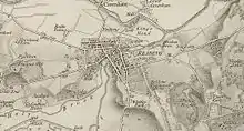 The town played an important role during the English Civil War; it changed hands a number of times. Despite its fortifications, it had a Royalist garrison imposed on it in 1642. The subsequent Siege of Reading by the Parliamentary forces succeeded in April 1643.[12] However, the taxes levied by the various parties left Berkshire 'in a miserable condition, hardly a sheep, hen, hog, oats, wheat, or any other thing for man or beast to feed upon'.[6] The town's cloth trade was especially badly damaged, and the town's economy did not fully recover until the 20th century.[6][13]