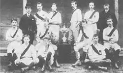 (Standing: F. J. Montgomery, G. Carter, M. Warn, J. L. Sommerville, A. A. Fry, G .C. Gandy. Sitting: A. Varley, C. E. Bromley (Capt.), G. Muir, A. Gandy. On ground: C. Deacon, F. J. Crossley, R. Ruffell.)