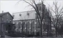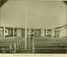 The number and devotion of the first parishioners permitted a church to be constructed within 10 years.[19] In 1856 the cornerstone was laid, and in 1857, the first St. Mary's Church was completed on Washington Street between Spruce and Marion Streets.[3][4][8][20][19][9] It could seat 700 people.[9]