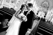 In 1901, an unusual double marriage ceremony took place where two sisters, Frances and Mary Curtis, married two men during a single mass.[55] Charles Logue, who built numerous churches in the Greater Boston area as well as Fenway Park, died in the arms of his son while inspecting the roof of St. Mary's in 1919.[56][57][58]