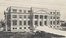 In 1916, a neo-classical county courthouse was opened. Prior to the opening of the courthouse, county business was conducted at a school building located at Clematis Avenue and Poinsettia Street.[7] The building underwent renovations in the 1950s and 1960s.[26] It was used as the county courthouse until a new courthouse opened in 1995. The Board of County Commissioners agreed in 2002 to return the historic courthouse to its original design. Restoration was completed in March 2008 at a cost of just over $18 million. Today, the original courthouse houses the Historical Society of Palm Beach County and the Richard and Pat Johnson Palm Beach County History Museum.[27]