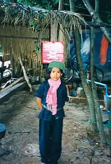 Children in the military are children (defined by the Convention on the Rights of the Child as persons under the age of 18) who are associated with military organizations, such as state armed forces and non-state armed groups.[1] Throughout history and in many cultures, children have been involved in military campaigns.[2] For example, thousands of children participated on all sides of the First World War and the Second World War.[3][4][5][6] Children may be trained and used for combat, assigned to support roles such as porters or messengers, or used for tactical advantage as human shields or for political advantage in propaganda.[1][7]