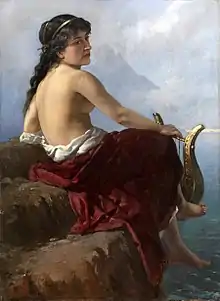 Nonetheless, there are a few references to female homosexuality in ancient Greek literature. Two poets from the archaic period, Sappho and Alcman, have been interpreted as writing about female homosexual desire. Alcman wrote hymns known as partheneia,[note 1] which discuss attraction between young women. Though it is ambiguous, historians have considered the attraction in question to be erotic or sexual.[10] At roughly the same time, Sappho's poems discuss her love for both men and women. For instance, in Sappho's Ode to Aphrodite, the poet asks Aphrodite for aid in wooing another woman. It is noticeable that the fragment describes Sappho both giving to and receiving sexual contact from the same partner, in contrast with the rigid active/passive partner dichotomy observed in Greek male homosexual relationships.[11] Only one fragment of Sappho's poetry, Sappho 94, contains a clear mention of female homosexual acts.[12]