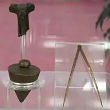 At roughly the same time, the Han Chinese and the Romans both invented the wheeled odometer device for measuring distances traveled, the Roman model first described by the Roman civil engineer and architect Vitruvius (c. 80 BC – c. 15 BC).[97] The device was used at least until the reign of emperor Commodus (r. 177 – 192 AD), but its design seems to have been lost until experiments were made during the 15th century in Western Europe.[98] Perhaps relying on similar gear-work and technology found in the Antikythera mechanism, the odometer of Vitruvius featured chariot wheels measuring 4 feet (1.2 m) in diameter turning four-hundred times in one Roman mile (roughly 4590 ft/1400 m). With each revolution, a pin-and-axle device engaged a 400-tooth cogwheel that turned a second gear responsible for dropping pebbles into a box, each pebble representing one mile traversed.[99]