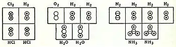 Two atoms may conform to the rule of eight, or the octet rule, not only by the transfer of electrons from one atom to another, but also by sharing one or more pairs of electrons...Two electrons thus coupled together, when lying between two atomic centers, and held jointly in the shells of the two atoms, I have considered to be the chemical bond. We thus have a concrete picture of that physical entity, that "hook and eye" which is part of the creed of the organic chemist.