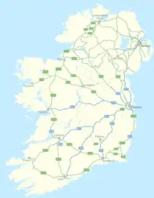 Roads in Ireland are currently classified as motorways, National Primary routes, National secondary routes, Regional roads and Local roads. The introduction of this classification system began in 1977.