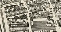 Seeking to create a Turnen Verein (Gymnastics Society) as a community space outside of church, about twenty members of the German community met at the butchery of one Robert Schubert on the evening of May 28, 1871, laying the groundwork for such an organization.[8][9] Historian Gerhard Wiesinger notes in his account on Holyoke's Germans that this may have been prompted by anticipation of community growth, as the meeting occurred only two weeks after the Treaty of Frankfurt. At the first official meeting of the organization on June 8, at Schubert's house and garden, officers were elected and the motions were made to formally incorporate the Holyoke Turn Verein as an organization "in order to provide the German language, German customs and traditions, and particularly German gymnastics with a permanent home".[1] Over the next several years the group would meet at various member's homes, as well as at the Germania Hotel which stood at the corner of Race and Hamilton Streets.[10][lower-alpha 2]