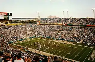 The history of the Jacksonville Jaguars, an American football team in the National Football League (NFL), formally dates to November 30, 1993, when the NFL awarded Jacksonville, Florida the expansion franchise that became the Jacksonville Jaguars.[1] The Jaguars, along with the Carolina Panthers, started play in the 1995 NFL season as expansion teams.