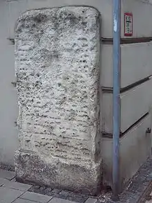 The overall impoverishment of the city fueled tensions between 1475 and 1519, and ultimately culminated in the expulsion of the Jewish community.[1] The anti-Semitic preachings of Peter Nigri lead to the confiscating of the Jews' property in 1476, and the community was then thrown into chaos by the Simon of Trent trial in Italy.[1] The Jewish community of Trent, in a blood libel, was accused of murdering a Christian boy for ritual purposes. While being tortured, one of the accused Jews said something about the Jewish community of Ratisbon using the blood of Christian children in ritual to make Passover matzo. Word was sent to Ratisbon, and seventeen Jews were arrested. They remained imprisoned for four years, and were released only after repeated requests from Frederick III.[1] Later, the Anabaptist Balthasar Hubmaier called for the expulsion of Jews from the city, turning their synagogue into a church, and accused them of usury.[1] When Maximilian died, the opportunity was taken to expel the Jews from the city, 800 in all, in 1519.[1] Afterwards, about 5,000 tombstones from the Jewish cemetery were raised and used as building material. The synagogue was also raised and a chapel was built on the site, which became a popular pilgrimage place.[1]