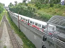 Until 1989, SkyTrain terminated at New Westminster Station; in 1987 construction began on an extension including the Skybridge, Columbia Station, and Scott Road Station, extending service to Surrey.[9] The line was expanded yet again in 1994 with the opening of the Gateway, Surrey Central, and King George stations. SkyTrain is part of the 1996 Greater Vancouver Regional District's (GVRD) Livable Region Strategic Plan, which discusses strategies to deal with the anticipated increase of population in the region. These strategies include increasing transportation choices and transit use.[10]