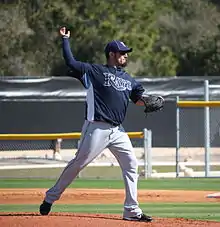 During the offseason, several key players from the Rays were either traded away or lost to free agency. They received five minor league prospects from the Chicago Cubs in a trade that included starting pitcher Matt Garza,[20] while shortstop Jason Bartlett was sent to the San Diego Padres for four minor league prospects.[21] Seven relief pitchers would not return to the team in 2011. First baseman Carlos Peña, the franchise's all-time leader in home runs, signed with the Chicago Cubs.[22] Perhaps the biggest loss for the Rays was left fielder Carl Crawford, who signed a lucrative deal with the Boston Red Sox.[23]