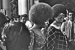 Activists in the 1970's used Socialism and reinterpreted in order to encompass members of radical movements, whether it be the Black Panther Party or the Gay and Lesbian Left. The overlap between all of these different radical movements was that they were oppressed peoples who were subjugated by the ruling straight white male elite class. Similar themes between these different movements was the issue of capitalist violence that was used to preserve power for the ruling class. There was a prominent group of socialist activists in San Francisco who were combatting the issues of homophobia, American imperialism, and police brutality. The assassination of gay rights proponent Harvey Milk by an ex-cop resulted in police violence that “encouraged attacks on gay men, Lesbians, prostitutes, and Third World people".[197] Angela Davis, an ally of the Black Panther Party and a socialist, viewed capitalism as an inherently violent system. In response to a question regarding the violent nature of the Black Panthers, she says “If you are a black person who lives in a black community all your life and walk out on the street everyday seeing white policemen surrounding you… When you live under a situation like that constantly, and then you ask me whether I approve of violence, I mean, that just doesn’t make sense at all.” Davis speaks to how capitalism subjugates black people through violence and that the main purpose of police is to protect white supremacy. The Black Panther Party were prominent members of Black Power Movement and was fueled by what they saw as systemic racism perpetuated against black people. According to Douglas Sturm, Professor Emeritus of Religion and Political Science at Bucknell University: "Police brutality, lack of opportunity, and the realization that opportunity was not forthcoming in the near future led many Blacks to conclude that armed self-defense coupled with self-help was the only way to end the despair."[198] This armed-self defense made many white Americans fearful of the Black Panthers and contributed to the FBI's designation of the Black Panthers as a terrorist organization. Although the Black Panthers were labeled violent extremists and terrorists, they provided many resources to their communities, including free healthcare, breakfast, and education services.[199]