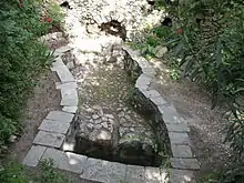 The earliest evidence of deliberate winemaking is from excavation at sites like Areni-1 winery in what is now the Vayots Dzor Province of Armenia. This site, dating back to around 4000 BC included a trough that measured about 3 by 3 1/2 feet and included a drain that went into a 2-foot-long vat that could contain about 14–15 gallons (52–57 liters) of wine.[5] The carbon dating of these sites (and earlier sites at Çatalhöyük and Neolithic B sites in Jordan) are based on left over grape pips (seeds) and while they provide solid evidence of wine making, they do not necessarily provide evidence of how the wine was made and if the modern concept of pressing (i.e. extracting juice from the skins and separating it from the skins and seeds) was used.[2]