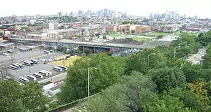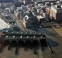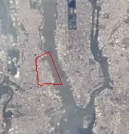 ![]() An aerial view of Hoboken from above the Hudson River | |