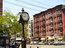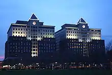 In 1975, the western part of the Keuffel and Esser Manufacturing Complex (known as "Clock Towers") was converted into residential apartments, after having been an architectural, engineering and drafting facility from 1907 to 1968;[61] the eastern part portion became residential apartments in 1984 (now called the Grand Adams).[61]