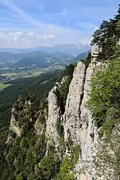 ![]() The western part of the Hohe Wand with its steep rock faces dropping away to the south. In the centre, the Hochfallwand. | |