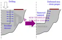 The hole drilling method is a method for measuring residual stresses,[1][2] in a material. Residual stress occurs in a material in the absence of external loads. Residual stress interacts with the applied loading on the material to affect the overall strength, fatigue, and corrosion performance of the material. Residual stresses are measured through experiments. The hole drilling method is one of the most used methods for residual stress measurement.[3]