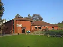 The hill fort is located within Hollingbury Park, an area of approximately 240 acres (0.97 km2; 0.38 sq mi) most of which is occupied by the municipal golf course, designed in 1907 and remodelled in 1936.[3] The park also contains football pitches, six tennis courts, a bowling green and a children’s playground. For many years the park was known by locals as "The Rocket Park" on account of the rocket-shaped climbing frame in the playground but this was removed and the playground extended in the early 1980s. An area towards the northern end of the park is fenced off and contains a weather station and underground reservoir. On a clear day, the park offers views over the city to the English Channel. Adjacent to the park is an area of woodland planted in the nineteenth century; the majority of this was destroyed in the Great Storm of October 1987.[4] The local council maintains an easy-access trail through the woodland.[5] Carden Park, located towards the north-east of the estate between Carden school and the industrial estate, occupies approximately 12 acres (0.05 km2; 0.02 sq mi) and was originally laid out in the 1950s. The original tennis courts and swings were lost during industrial development in 1968 and the park now contains a football pitch and play area for young children.[6]