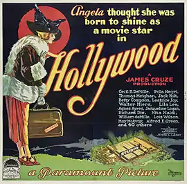 Hollywood is a 1923 American silent comedy film directed by James Cruze, co-written by Frank Condon and Thomas J. Geraghty, and released by Paramount Pictures. The film is a lengthier feature follow-up to Paramount's own short film exposé of itself, A Trip to Paramountown from 1922.[1]