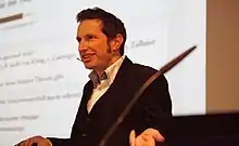 Hümmler has been active in the German skeptics' group GWUP since 1990s.[1] He was a regional spokesman and convenor for the Frankfurt area.[3] He first became interested in skepticism after reading about the European Skeptics Congress.[7] For several years he was an editor of The Skeptiker magazine.[9] He now investigates pseudoscience claims mostly from the areas of pseudo-physics, business esoterics, conspiracy theories,[2][3] supernatural claims in martial arts,[2][3][6][9] alleged UFO encounters,[5][6][9] weather effects,[5][9] biological influence of radiation,[5] misuse of physics terminology in pseudoscience, especially in Quantum Theory and Theory of Relativity,[9] debunking free energy theories[9] and quantum healing[3].