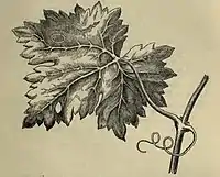 The larvae feed on Vitis vinifera. They mine the leaves of their host plant. The mine starts as a relatively long, slender gallery. Later, the mine becomes a small blotch with small cut-outs. Pupation takes place in a cocoon which is often attached to the stems or leaves of the host plant.[2]