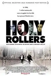 Holy Rollers is a 2010 American independent crime drama film directed by Kevin Asch and written by Antonio Macia. It stars Jesse Eisenberg, Justin Bartha, Ari Graynor, Danny A. Abeckaser and Q-Tip. The film is inspired by a true story of a young Hasidic man who was lured into the world of international drug trafficking in the late 90s.