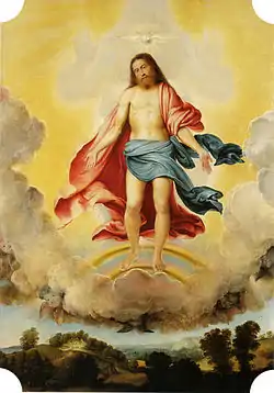 Holy Trinity is an oil on canvas painting by Lorenzo Lotto, created c. 1519-1520. It was produced as a high altarpiece for the Trinità Church in Bergamo, then sited in front of the Church of Santo Spirito.[1] There it was sited near Lotto's Pietà with Saint Joseph and a Female Saint. The church was suppressed in 1808 and demolished, with the painting acquired by the local curate Giovanni Battista Conti.[2] It was later inherited by Giuseppe, a friar, who in 1818 gave it to the Church of Sant'Alessandro della Croce, its present owner. It is currently temporarily stored at the Museo Adriano Bernareggi in Bergamo.[3]