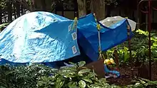 In 2001, the government reported there were approximately 25,000 homeless people in Japan.[10] At its peak in 2003, 25,269 homeless people were counted throughout Japan by the Ministry of Health, Labour and Welfare. In 2018, number of homeless people counted in Japan was 4,977 (4,607 males, 177 females and 193 people of obscurity).[11] In 2020, the number of homeless counted was 3,992 (3,688 males, 168 females and 136 people of obscurity), a 12.4% decrease from 2019.[7] The largest number of homeless was found in Osaka metropolitan area (1,038 people), followed by Tokyo metropolitan area (889 people) and Kanagawa prefecture (719 people).[7]