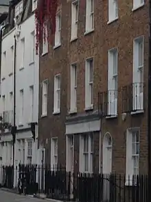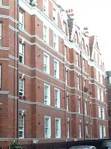 Halfway along on the west side at number 8 is Octavia House, an unassuming modern building, which was completed as a retirement home for nurses in 1975.[8] The building stands on the site of Freshwater Place, managed nearly a century earlier by the great social reformer Octavia Hill.[9] Freshwater Place had been acquired for Hill by leading Victorian art critic John Ruskin.