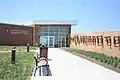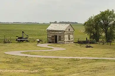 The Homestead Heritage Center, dedicated in 2007, contains exhibits that treat the effect of the Homestead Act on immigration, agriculture, native tribes, the tallgrass prairie ecosystem, and federal land policy. The roof line of the center resembles a "single bottom plow moving through the sod," and the parking lot measures exactly 1-acre (4,000 m2).[4] A separate Education Center features science and social science presentations that can be shared with classrooms anywhere in the United States through distance-learning.[5]
