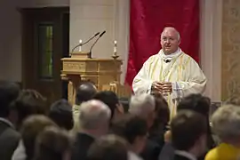 In the Roman Catholic Church, the Holy See, through the Congregation for Divine Worship and the Discipline of the Sacraments (headed as of February 2015 by Cardinal Prefect Robert Sarah), has published an official guide and directory for use by bishops, priests, and deacons, who are charged with the ministry of preaching by virtue of their ordination, and for those studying the subject, among others seminarians and those in diaconal formation, called the Homiletic Directory.[20] The Directory was developed in response to a request made by participants in the Synod of Bishops held in 2008 on the Word of God, and in accordance with the instructions of Pope Benedict XVI.[20]
