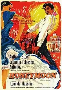Honeymoon (Spanish: Luna de miel), also shown as The Lovers of Teruel in the United States, is a 1959 film by the British director-writer Michael Powell based in part on the ballet El Amor Brujo by Gregorio Martínez Sierra. The film stars Anthony Steel, Ludmilla Tchérina and Spanish ballet dancer Antonio, and features Léonide Massine.