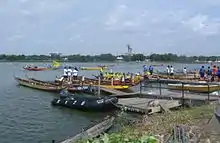 The Hong Kong Dragon Boat Festival in New York is an annual sporting and multicultural event held in August on Meadow Lake in Flushing Meadows–Corona Park in Queens, New York to celebrate the fifth moon (or the fifth month) of the lunar calendar. In addition to providing audiences with traditional Chinese foods and performances, the festival, now in its 18th year, hosts over 150 dragon boat teams from across North America, making it one of the largest dragon boat festivals in the United States. Depending on the competitive division, teams compete for cash prizes or airline tickets.