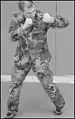 A hook is a punch in boxing.[1] It is performed by turning the core muscles and back, thereby swinging the arm, which is bent at an angle near or at 90 degrees, in a horizontal arc into the opponent.[1][2] A hook is usually aimed at the jaw, but it can also be used for body shots, especially to the liver.