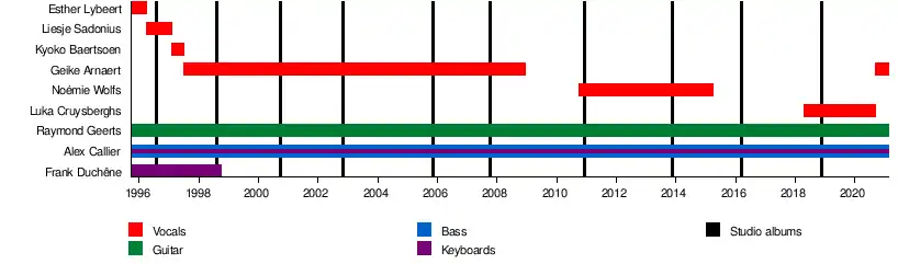 | Past members | Esther Lybeert Frank Duchêne Liesje Sadonius Kyoko Bartsoen Noémie Wolfs Luka Cruysberghs |