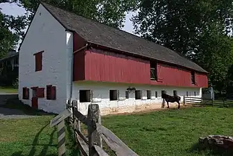 Hopewell Furnace National Historic Site in southeastern Berks County, near Elverson, Pennsylvania, is an example of an American 19th century rural "iron plantation," based a charcoal-fired cold-blast iron blast furnace. The significant restored structures include the furnace group (blast furnace, water wheel, blast machinery, cast house and charcoal house), plus the ironmaster's house, company store, blacksmith's shop, barn and several worker's houses.