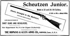 In addition to the Merwin Hulbert revolvers, Hopkins & Allen manufactured a variety of spur trigger single-action revolvers in .22, .32, and .38 calibers with trade names such as ACME, American Eagle, Blue Jacket, Captain Jack, Chichester, Defender, Dictator, Imperial Arms Co., Monarch, Mountain Eagle, Ranger, Tower's Police Safety, Universal, and XL, and later hinged-frame double-action models.[5] Hopkins & Allen manufactured revolvers for Forehand & Wadsworth under contract as well as shotguns, rifles, and derringers for various sporting goods stores.[3]
