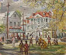 Day's introduction to the Carolina Lowcountry in 1936 occurred at the height of the artistic movement now known as the Charleston Renaissance.[22] Over the next 50 years, Day carried this tradition into the late 20th century with works such as Athenian Room I (ca. 1980) and Kaye’s Drug Store, King Street, Charleston, SC (ca. 1980), depicting meeting places central to the daily lives of Charlestonians.[20]
