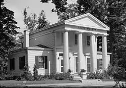 Horatio Gates Onderdonk House is a historic home located at Manhasset in Nassau County, New York. It was built in 1836 and is a Greek Revival style building with a two-story, three bay central mass flanked by one story, one bay wings. It features a giant portico supported by four Doric order columns.[2] By 1933, the Onderdonk farm was purchased for development by Levitt and Sons, who built the neighboring North Strathmore community. The house served as an office facility for the development, until the formation of the Strathmore Association, a membership organization composed of the owners of Strathmore property. The house and four corner plots adjoining "The Circle" were conveyed to the association on December 3, 1936, and the property has been maintained by the Strathmore Association since that time.[3]