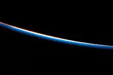 The horizon is the apparent line that separates earth from sky, the line that divides all viewing directions based on whether it intersects the Earth's surface or not. The true horizon is actually a theoretical line, which can only be observed when it lies on the sea surface. At many locations, this line is obscured by land, trees, buildings, mountains, etc., and the resulting intersection of earth and sky is called the visible horizon. When looking at a sea from a shore, the part of the sea closest to the horizon is called the offing.[1]