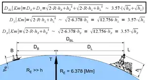 A much simpler approach, which produces essentially the same results as the first-order approximation described above, uses the geometrical model but uses a radius R′ = 7/6 RE. The distance to the horizon is then[2]